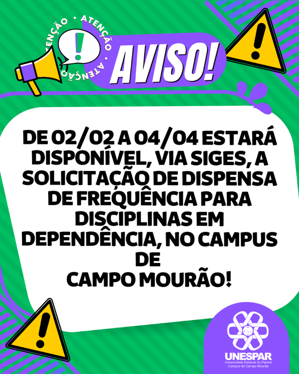 Estudantes podem solicitar dispensa de frequência em disciplinas em dependência até 4 de abril de 2026